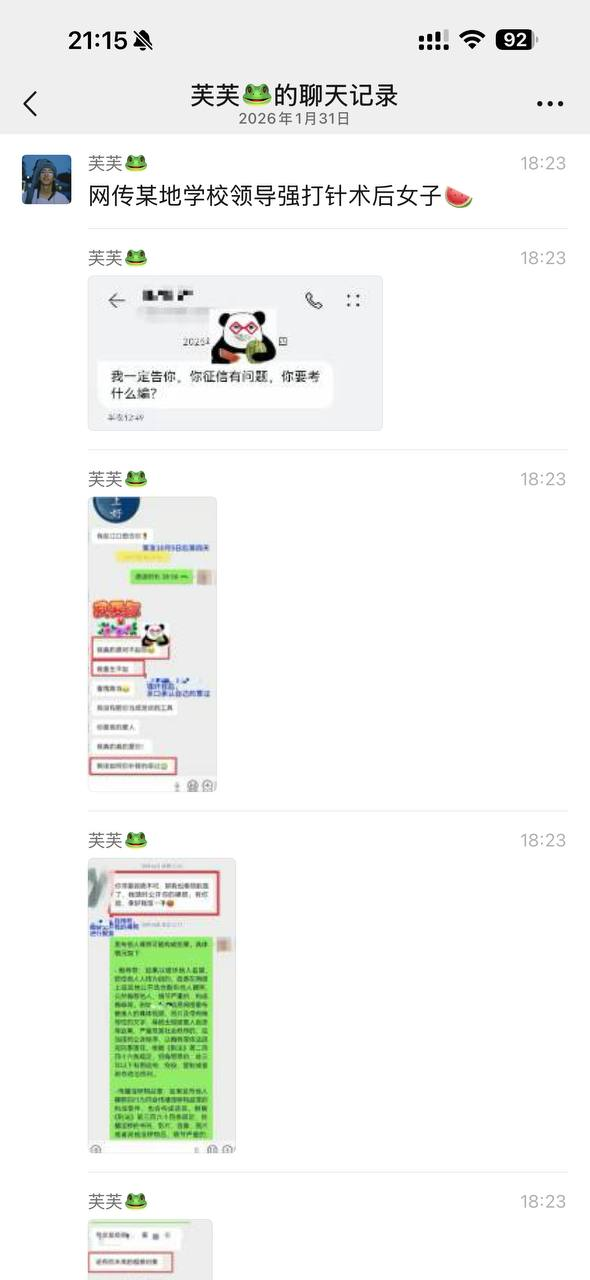 网传 某地 学校 领导 强 打针术后女子 #聊天记录