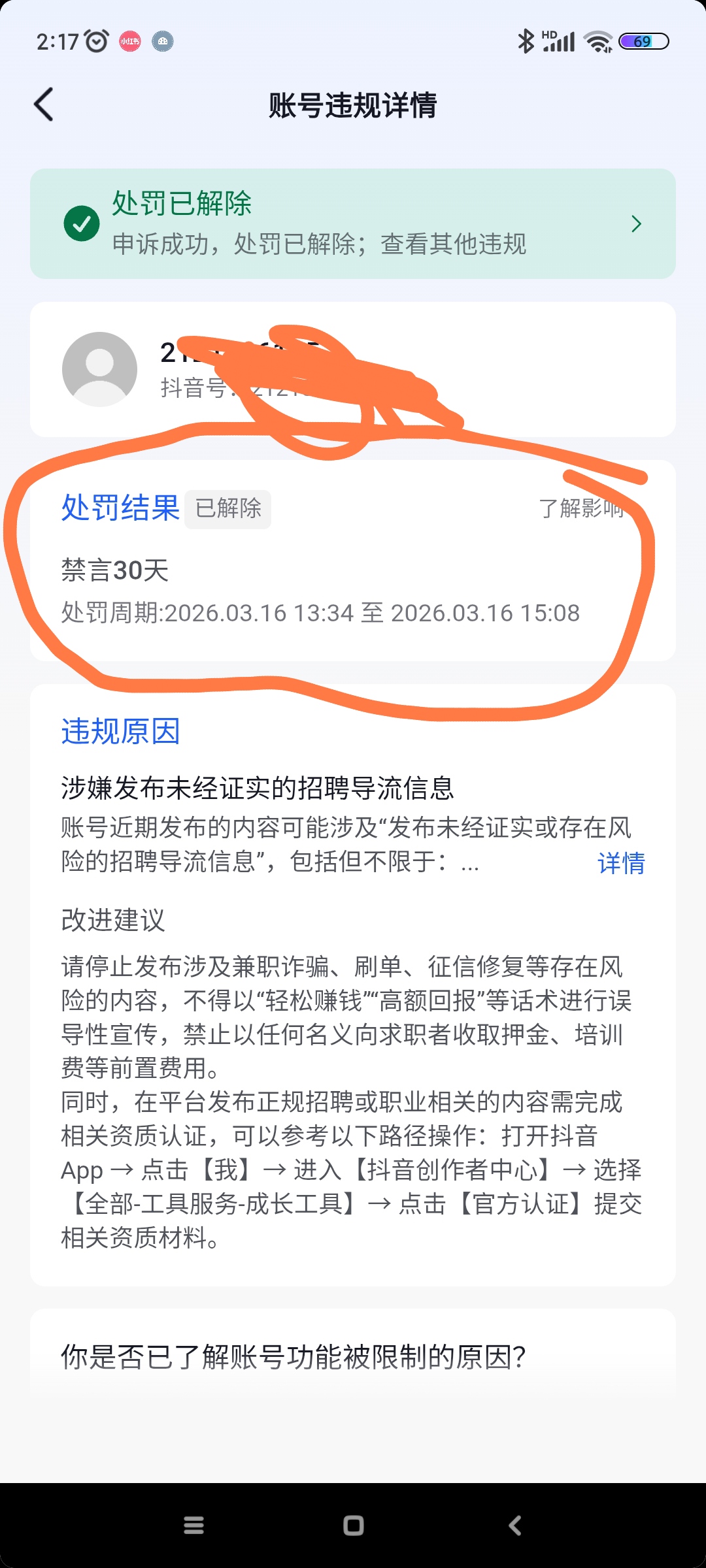 抖音被封30天申诉教程 老表亲测管用