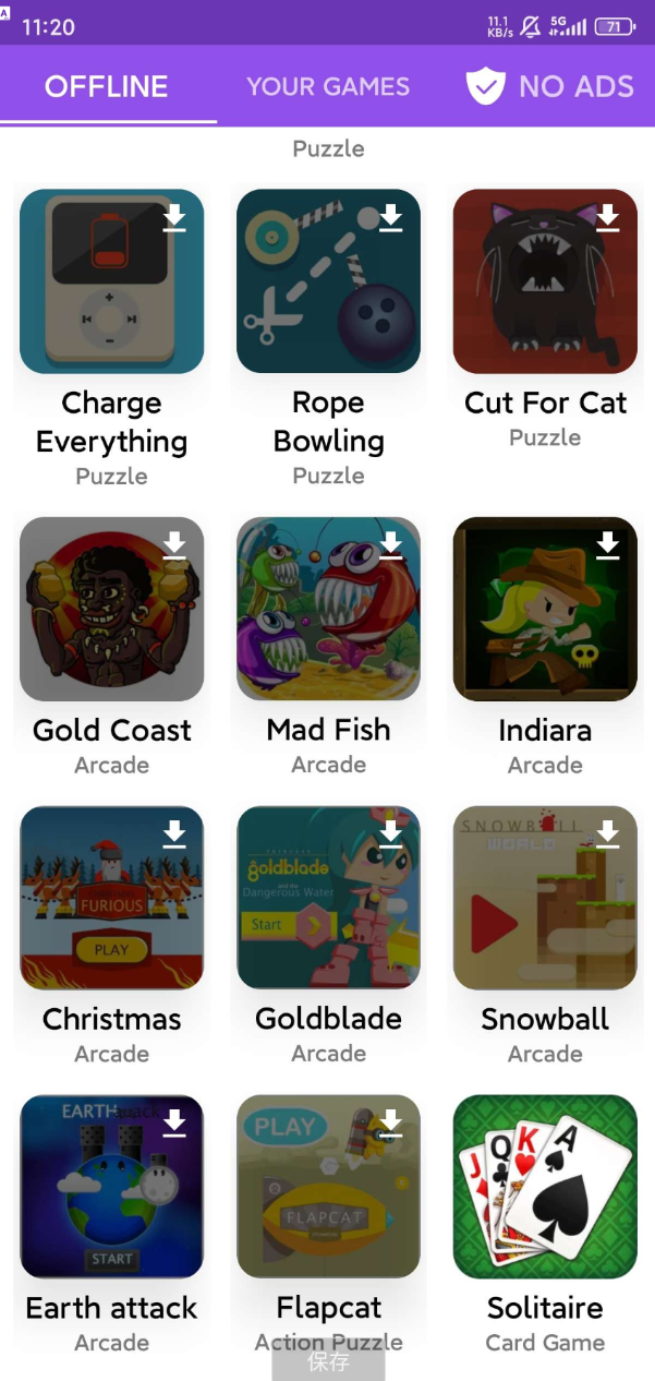 它有海量离线小游戏,涵盖多种类型,如纸牌、消除等,具备搜索、个性推荐等功能,游戏体验流畅,环境清爽